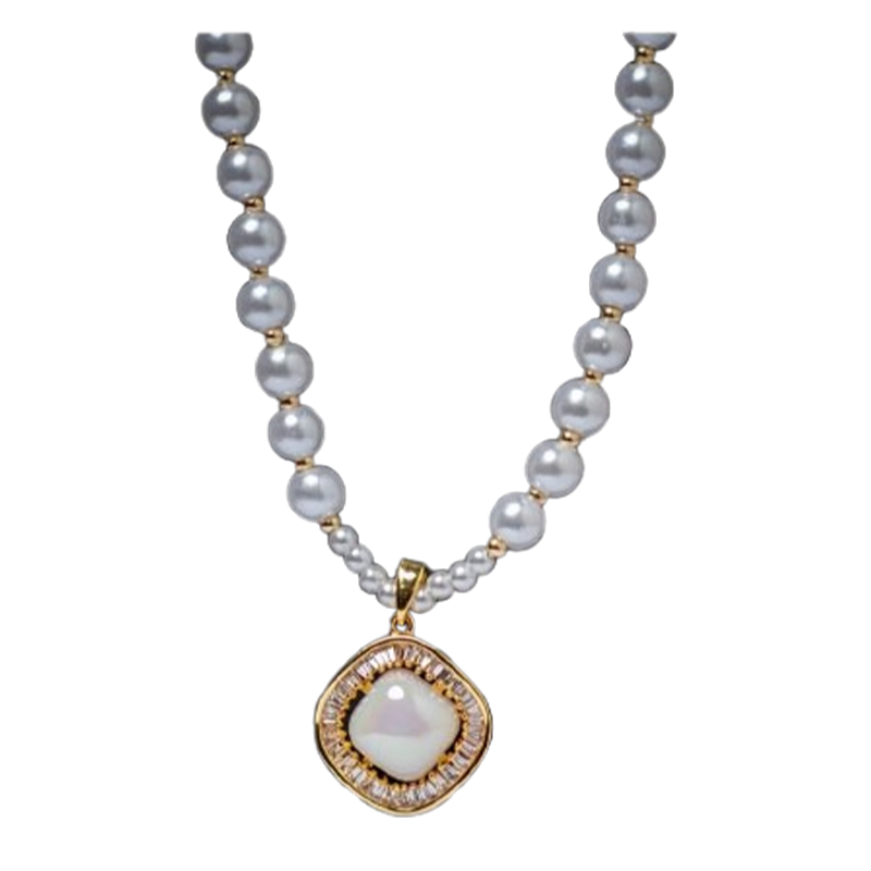 Sublimez votre look avec ce somptueux collier Élégance Perlée, alliant perles nacrées et finitions dorées. Son pendentif central orné d’une pierre opalescente encadrée de détails scintillants ajoute une touche de raffinement intemporel. Idéal pour les occasions spéciales comme pour rehausser une tenue du quotidien avec grâce et féminité.