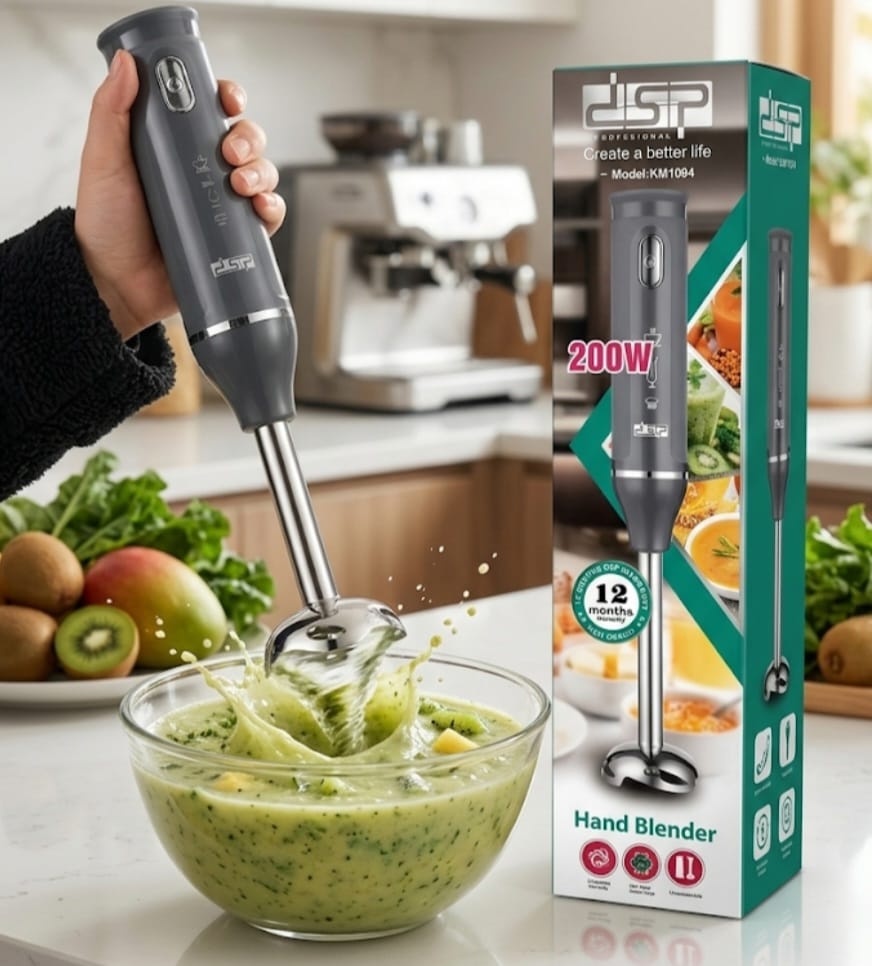 Le Hand Blender DSP KM1094 est l’outil indispensable pour tous ceux qui recherchent efficacité et simplicité en cuisine. Conçu pour répondre aux besoins quotidiens, ce mixeur allie une technologie de pointe à un design ergonomique pour transformer votre façon de préparer vos repas.