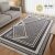 Style : Design moderne d’inspiration orientale avec des motifs de rosaces stellaires géométriques couvrant tout le centre. L’ensemble est structuré par des bordures linéaires épurées et une frise extérieure discrète. Palette de couleurs chic et sobre alliant le gris anthracite et le blanc cassé.
